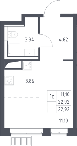 Студия № 179, 22.92 м2 с отделкой 2 эт.