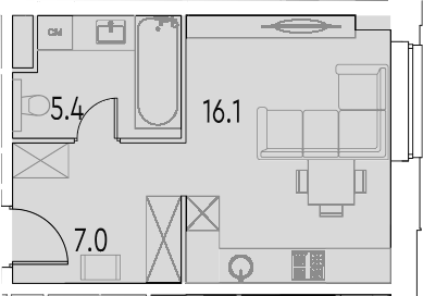 Студия № 43, 28.50 м2 без отделки 2 эт.