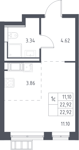 Студия № 421, 22.92 м2 с отделкой 8 эт.