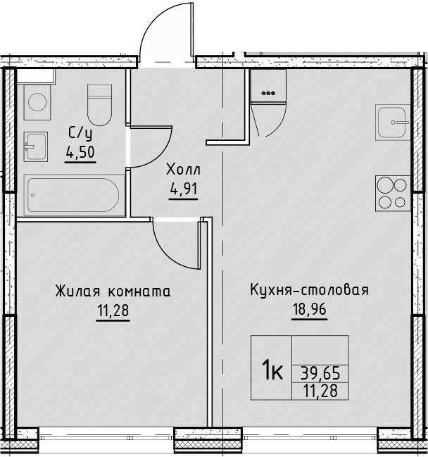 2-комнатная квартира № 769, 39.65 м2 без отделки 21 эт.