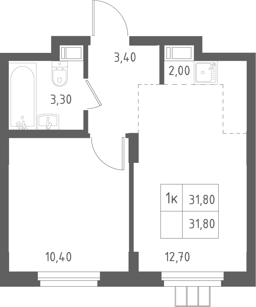 2-комнатная квартира № 313, 31.80 м2 с отделкой 16 эт.