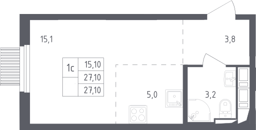Студия № 672, 27.10 м2 с отделкой 8 эт.
