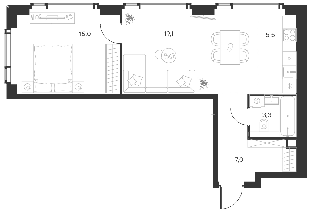 2-комнатная квартира № 248, 49.90 м2 без отделки 29 эт.