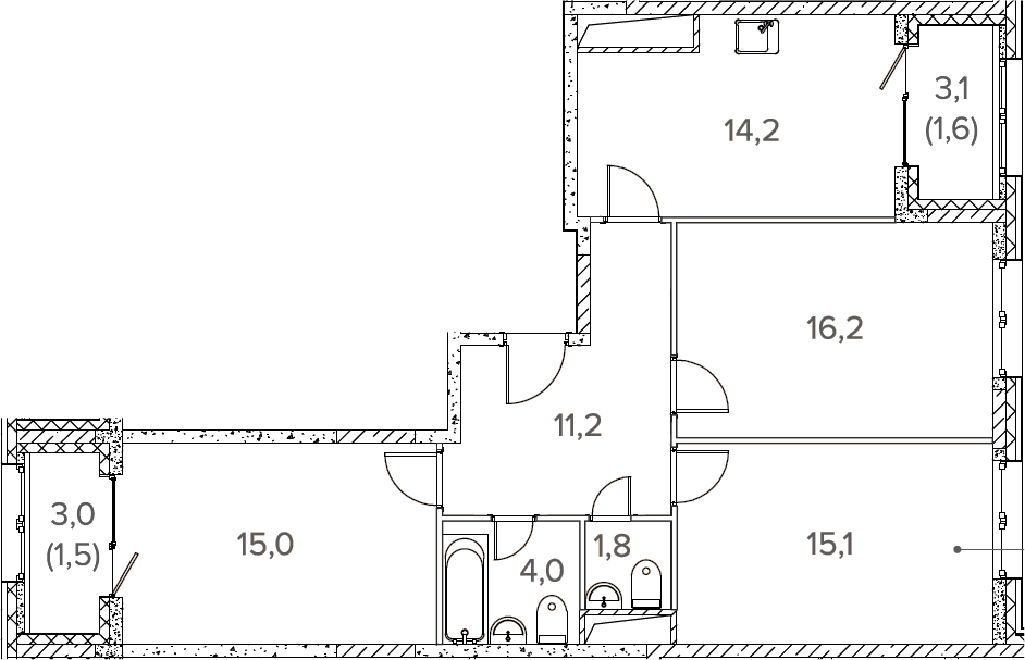 3-комнатная квартира № 211, 77.50 м2 без отделки 10 эт.