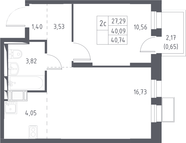2-комнатная квартира № 186, 40.09 м2 с отделкой 8 эт.