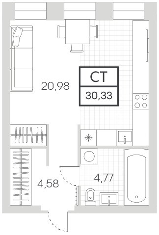 Студия № 674, 30.33 м2 с отделкой 1 эт.