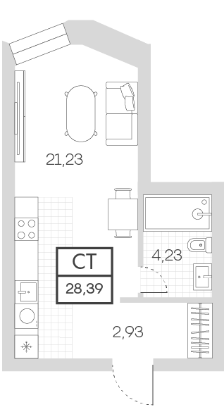 Студия № 561, 28.39 м2 с отделкой 2 эт.
