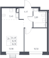 2-комнатная квартира № 285, 36.18 м2 с отделкой 14 эт.