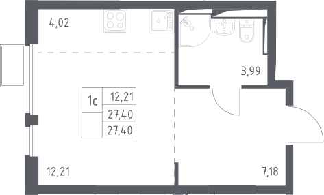 Студия № 135, 27.40 м2 с отделкой 11 эт.