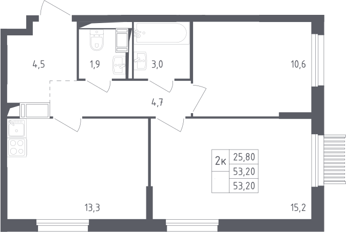 2-комнатная квартира № 2090, 53.20 м2 с отделкой 14 эт.