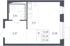 Студия № 153, 25.36 м2 с отделкой 4 эт.