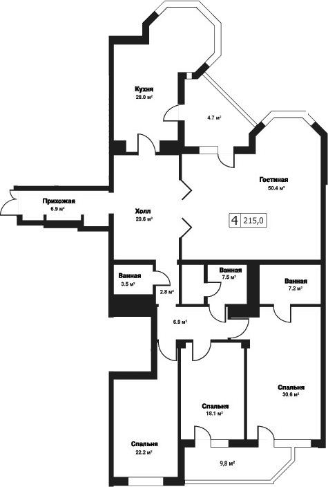 5-комнатная квартира № 96, 205.20 м2 с отделкой 4 эт.