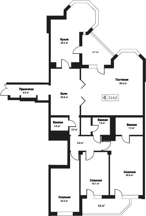 5-комнатная квартира № 107, 204.20 м2 с отделкой 7 эт.
