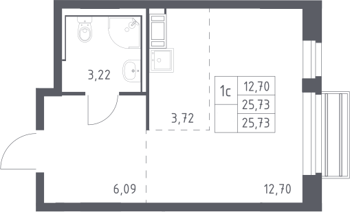 Студия № 69, 25.73 м2 с отделкой 6 эт.