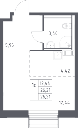 Студия № 116, 26.21 м2 с отделкой 2 эт.