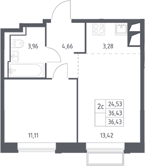 2-комнатная квартира № 17, 36.43 м2 с отделкой 3 эт.
