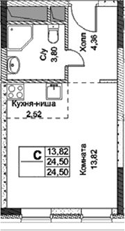 Студия № 366, 24.50 м2 без отделки 11 эт.