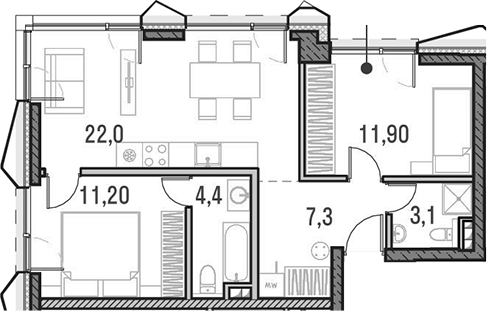 3-комнатная квартира № 25, 59.90 м2 с отделкой 4 эт.
