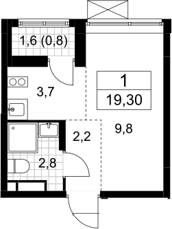 Студия № 106, 18.50 м2 с отделкой 9 эт.