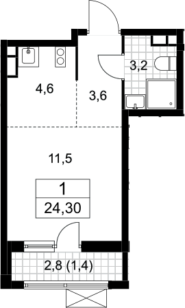 Студия № 115, 22.90 м2 с отделкой 10 эт.