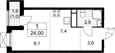 Студия № 73, 23.00 м2 с отделкой 10 эт.