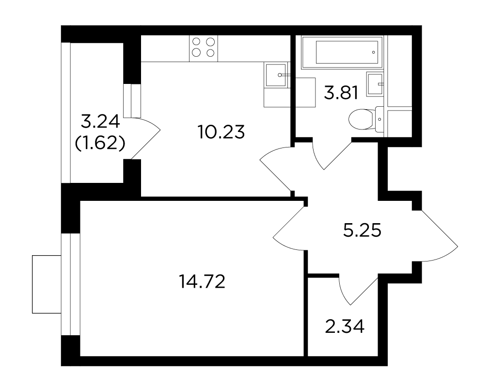1-комнатная квартира № 80, 36.35 м2 с отделкой 8 эт.