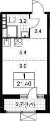 Студия № 996, 20.00 м2 с отделкой 7 эт.
