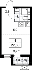 Студия № 1037, 21.70 м2 с отделкой 11 эт.