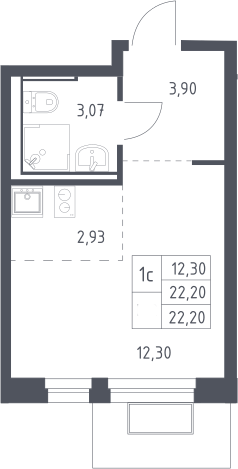 Студия № 390, 22.20 м2 с отделкой 6 эт.
