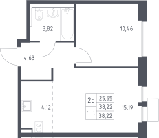 2-комнатная квартира № 284, 38.22 м2 с отделкой 10 эт.