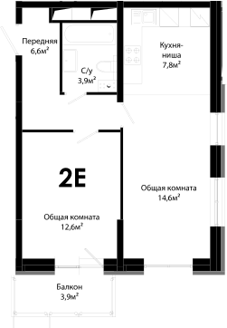 2-комнатная квартира № 2-4.11.9, 45.50 м2 без отделки 11 эт.