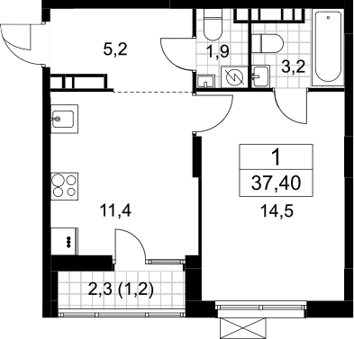 1-комнатная квартира № 311, 36.20 м2 с отделкой 8 эт.