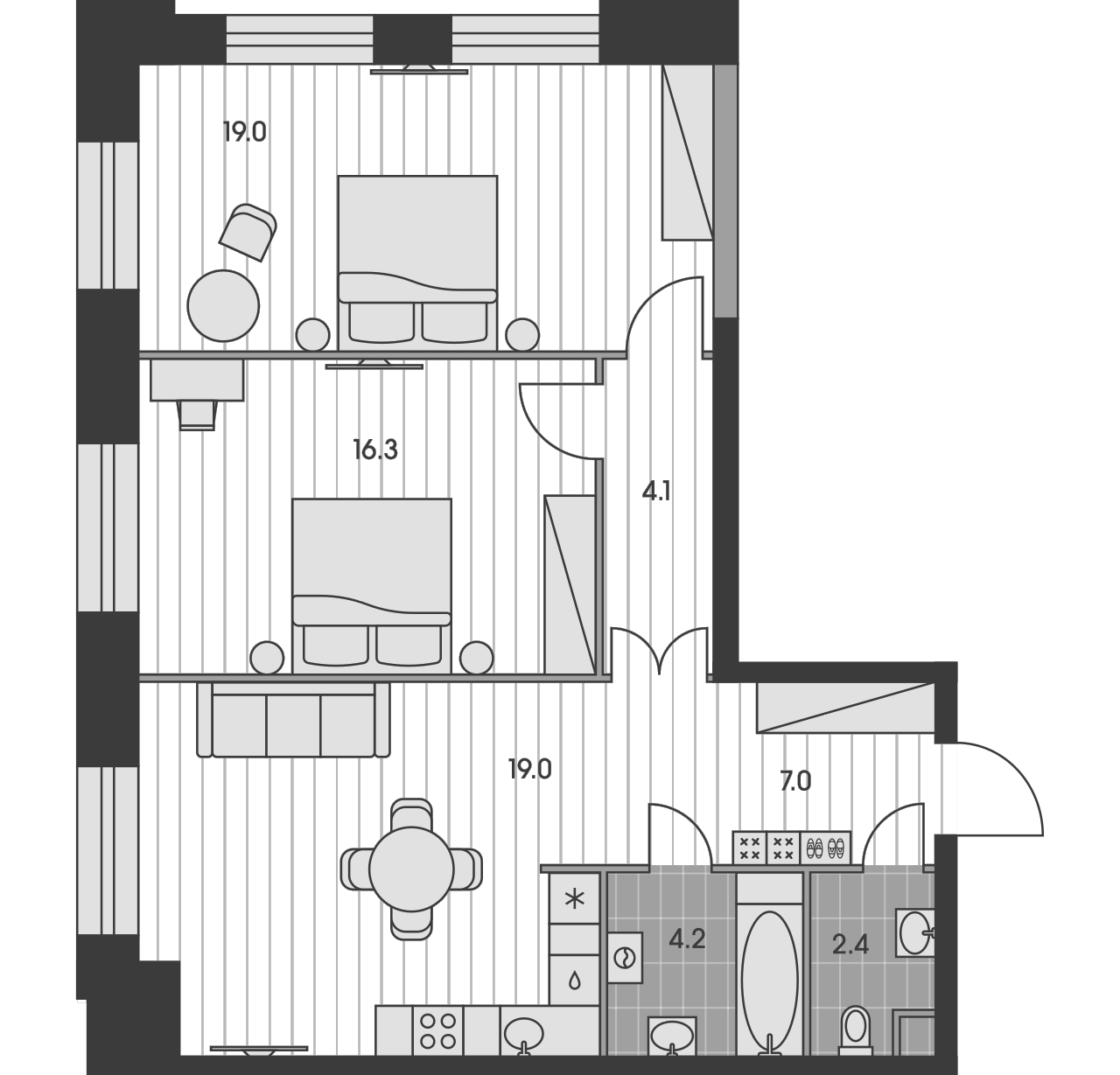 3-комнатная квартира № 3, 72.00 м2 без отделки 2 эт.