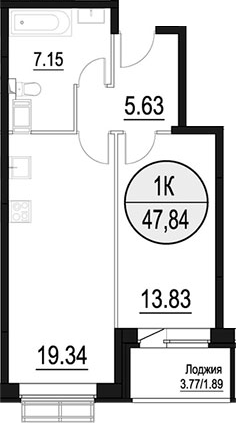 2-комнатная квартира № 182, 45.95 м2 с отделкой 2 эт.