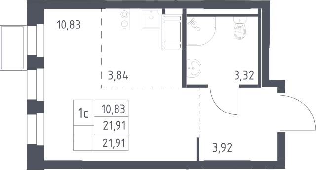 Студия № 307, 21.91 м2 с отделкой 13 эт.