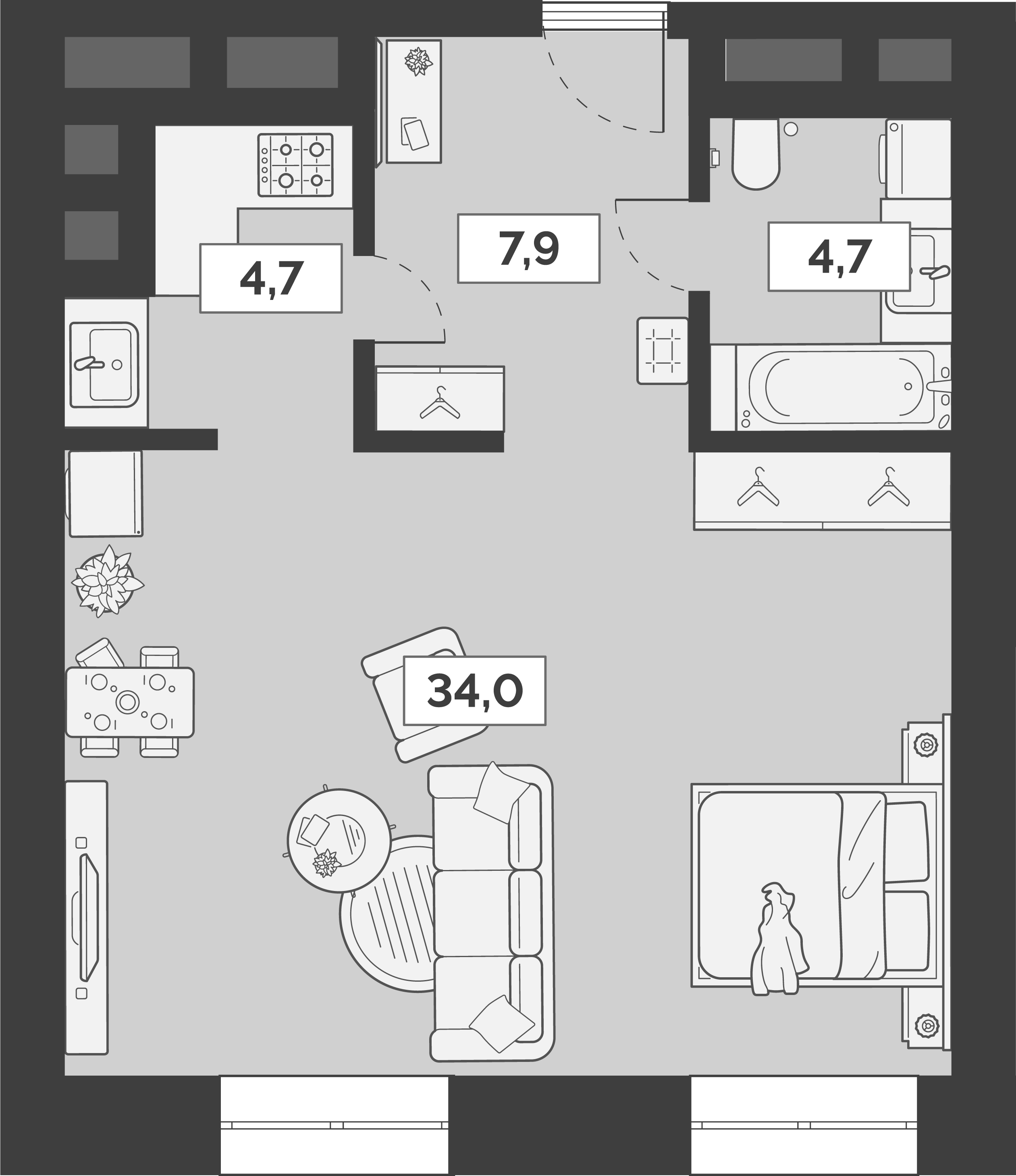 Студия № 449, 51.30 м2 без отделки 6 эт.