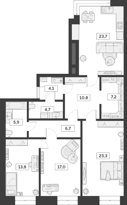 4-комнатная квартира № 53, 117.20 м2 без отделки 9 эт.