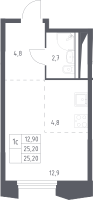 Студия № 3, 25.20 м2 с отделкой 2 эт.