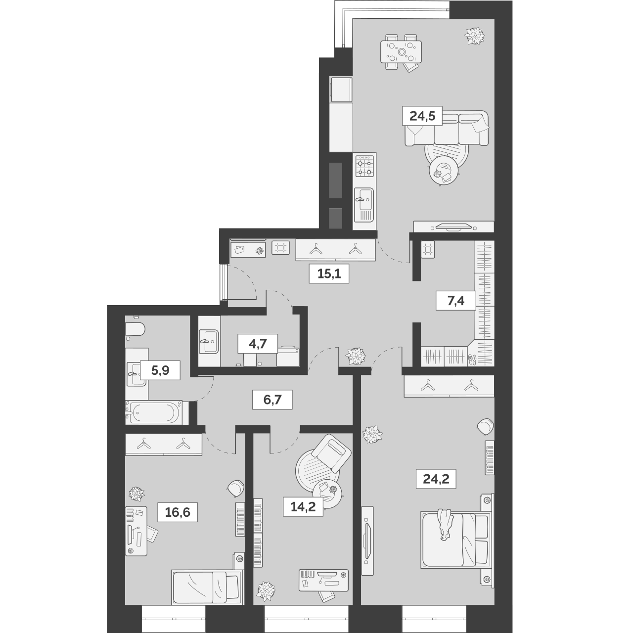 4-комнатная квартира № 376, 119.30 м2 без отделки 23 эт.