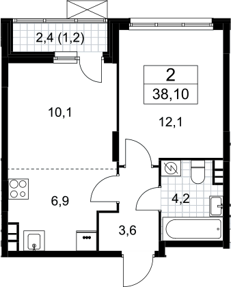 2-комнатная квартира № 289, 36.90 м2 без отделки 4 эт.