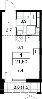 Студия № 355, 20.10 м2 без отделки 5 эт.