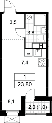 Студия № 515, 22.80 м2 без отделки 17 эт.