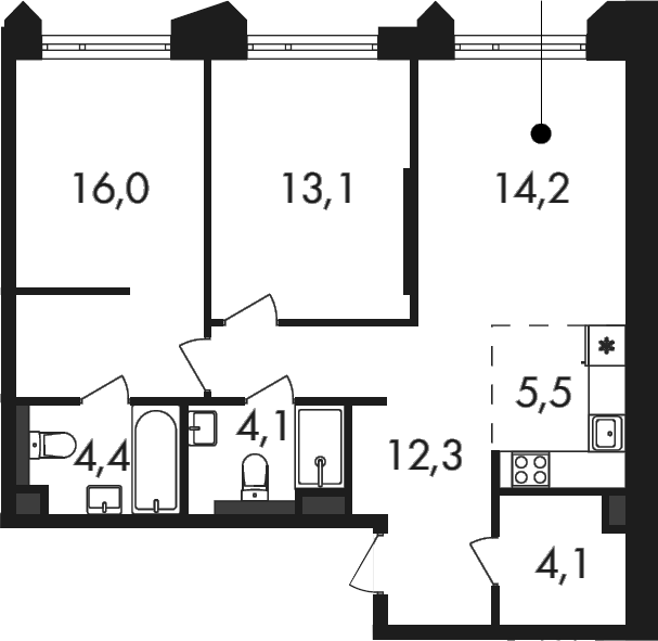 3-комнатная квартира № 370, 73.70 м2 без отделки 14 эт.