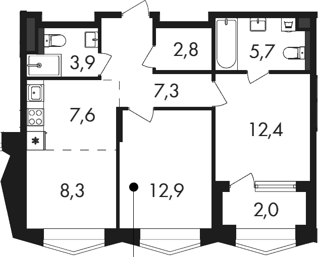 3-комнатная квартира № 972, 60.90 м2 без отделки 17 эт.