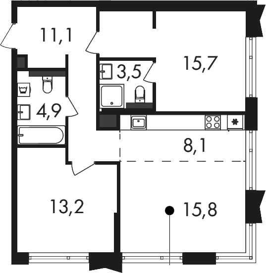 3-комнатная квартира № 986, 72.30 м2 без отделки 3 эт.