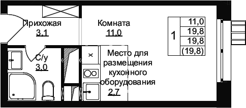 Студия № 120, 19.80 м2 без отделки 10 эт.