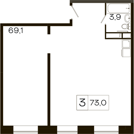 Студия № 451, 73.00 м2 без отделки 25 эт.