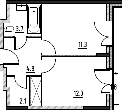 1-комнатная квартира № 41, 33.90 м2 без отделки 4 эт.