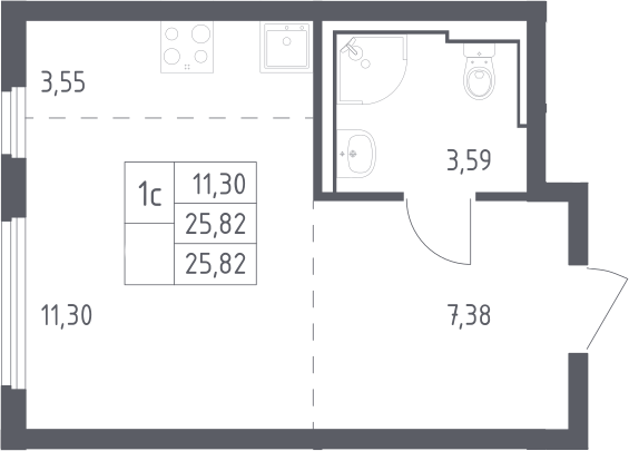 Студия № 136, 25.82 м2 с отделкой 13 эт.