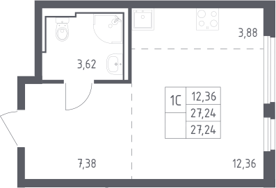 Студия № 168, 27.24 м2 с отделкой 4 эт.